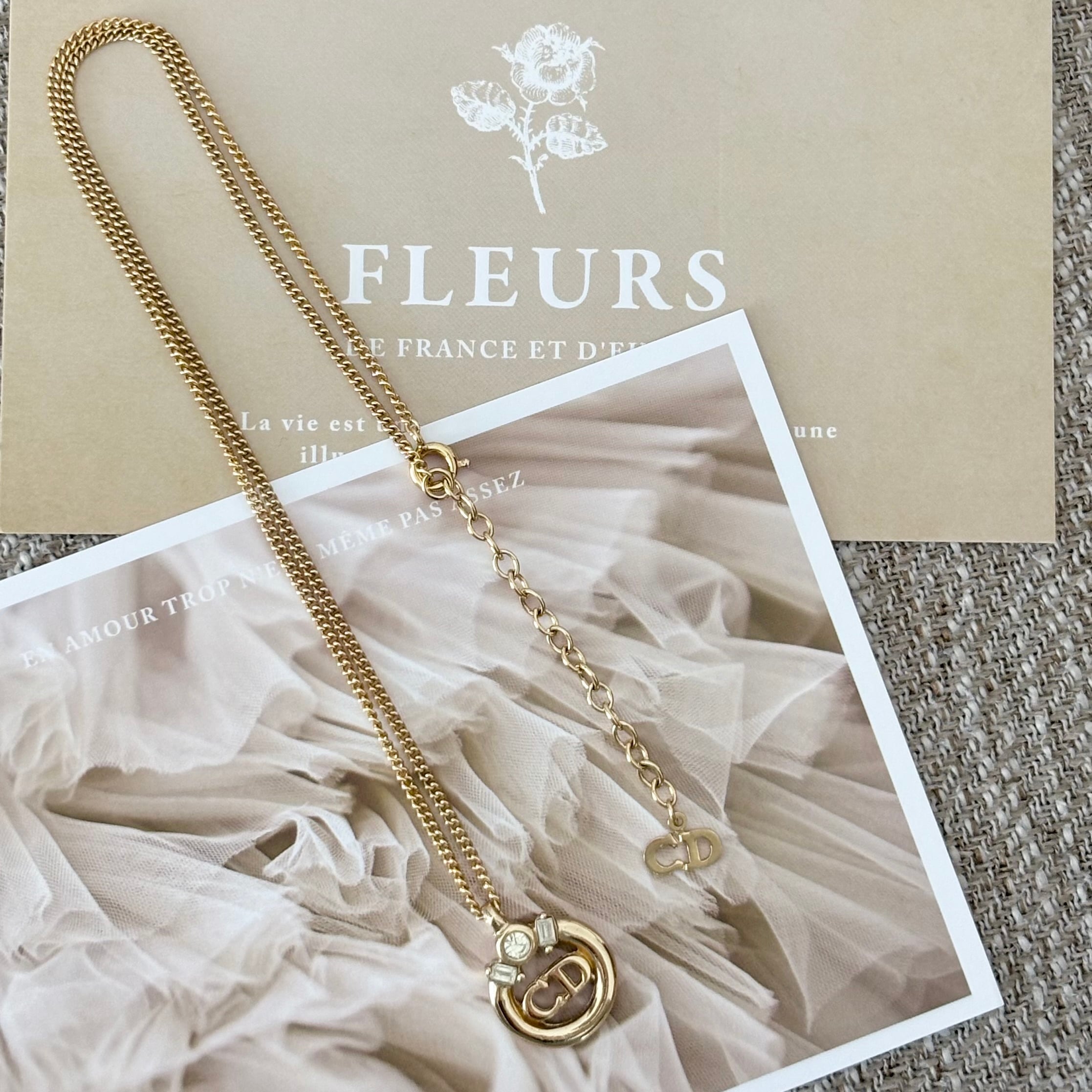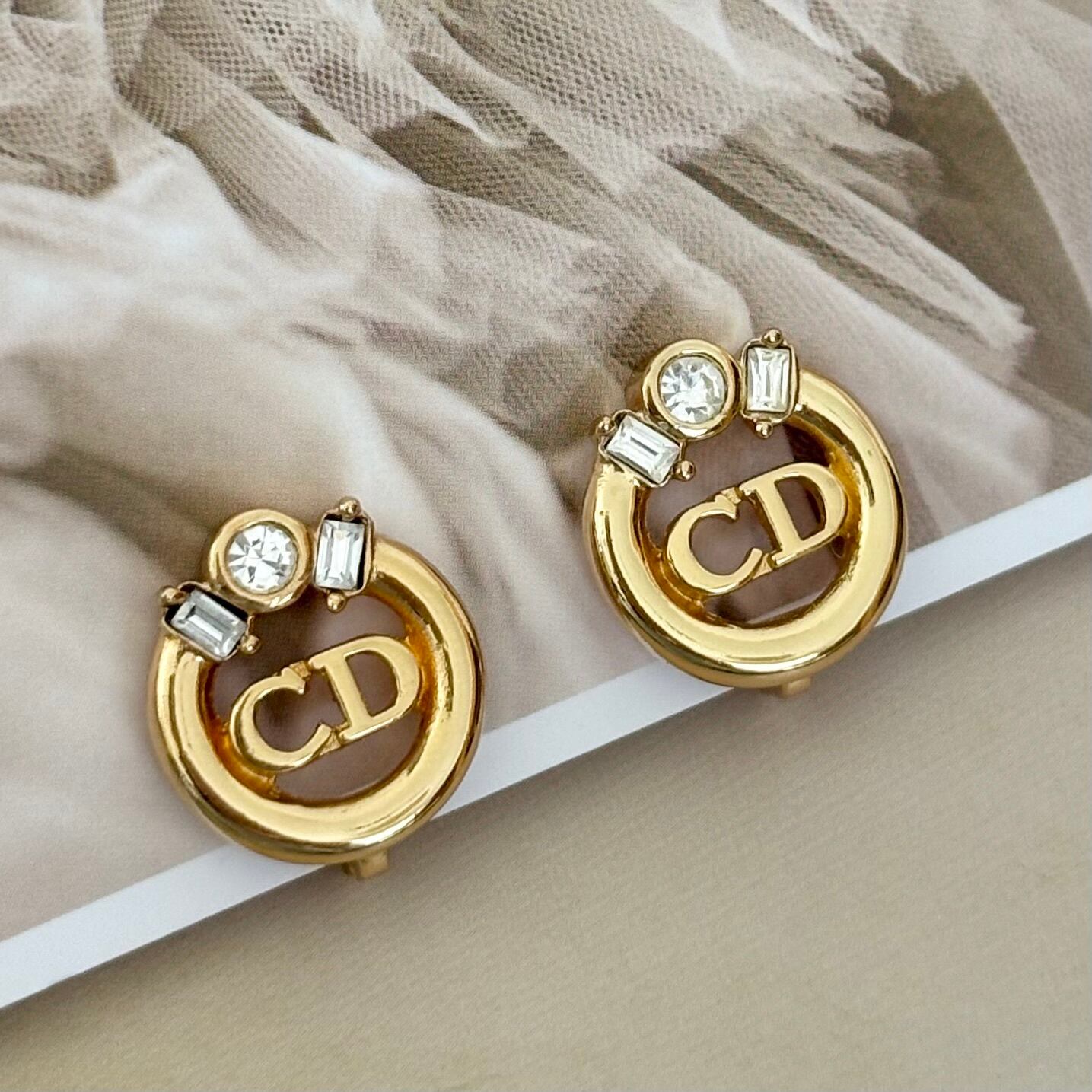 【極美品】【箱付き】クリスチャンディオール ネックレス イヤリングセット CDロゴ ラインストーン GPメッキ ゴールド 中古 レディース Dior Necklace Earrings Vintage アクセサリー ヴィンテージ 22069 | Laiza