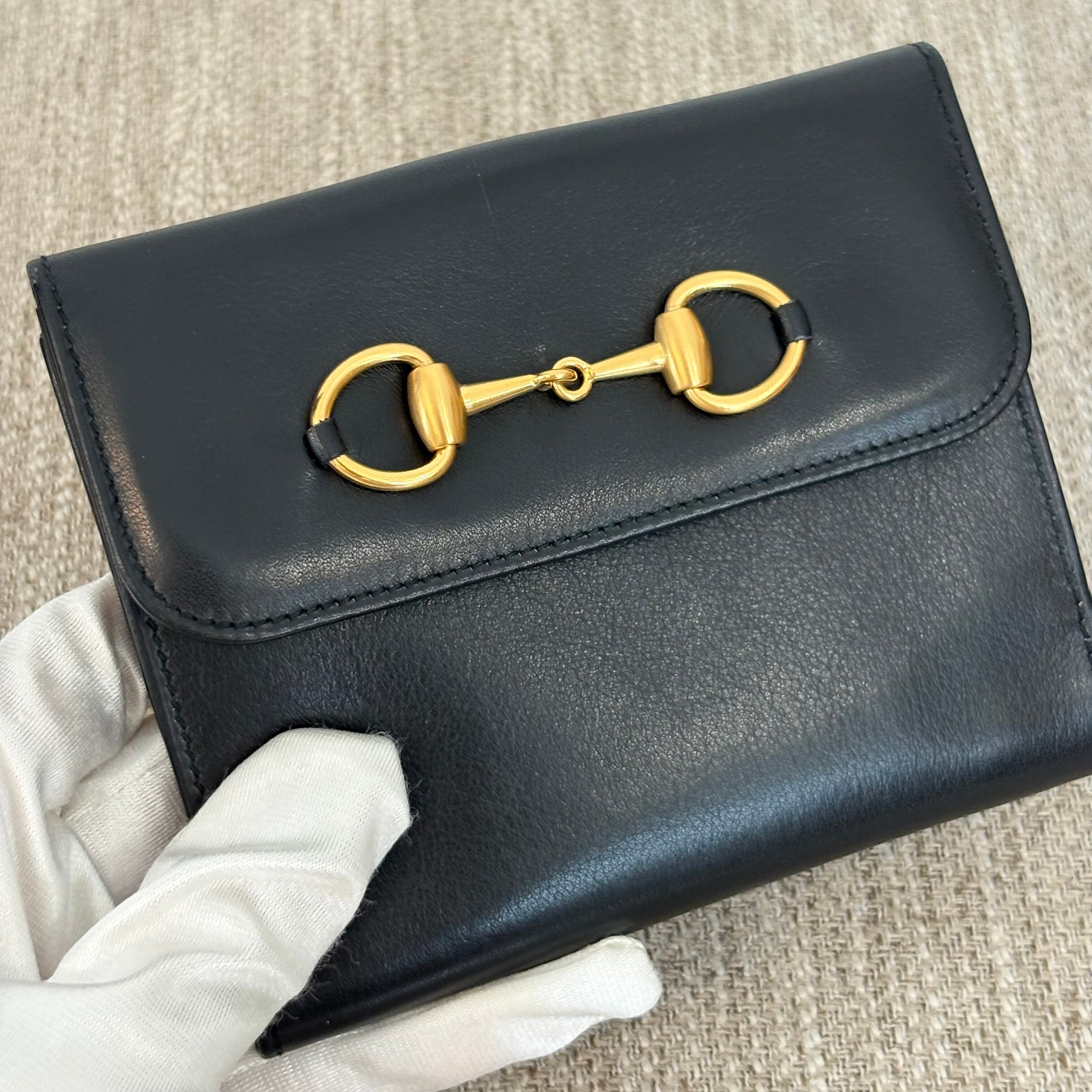 【極美品】【箱付き】グッチ ホースビット 二つ折り財布 レザー ブラック メンズ レディース ユニセックス ゴールド金具Auth Gucci Fold Horsebit Mini Wallet Black Leather 22185 | Laiza