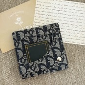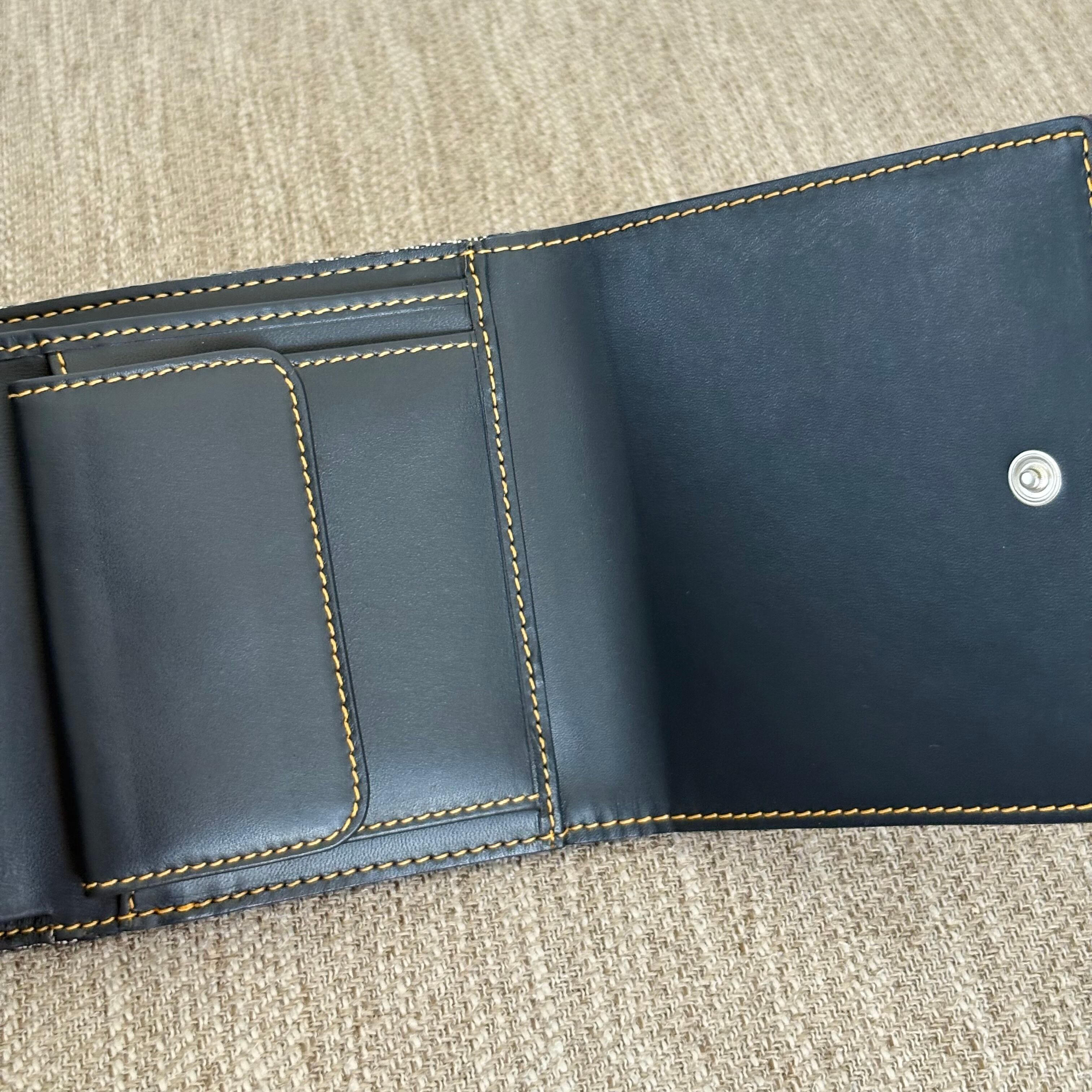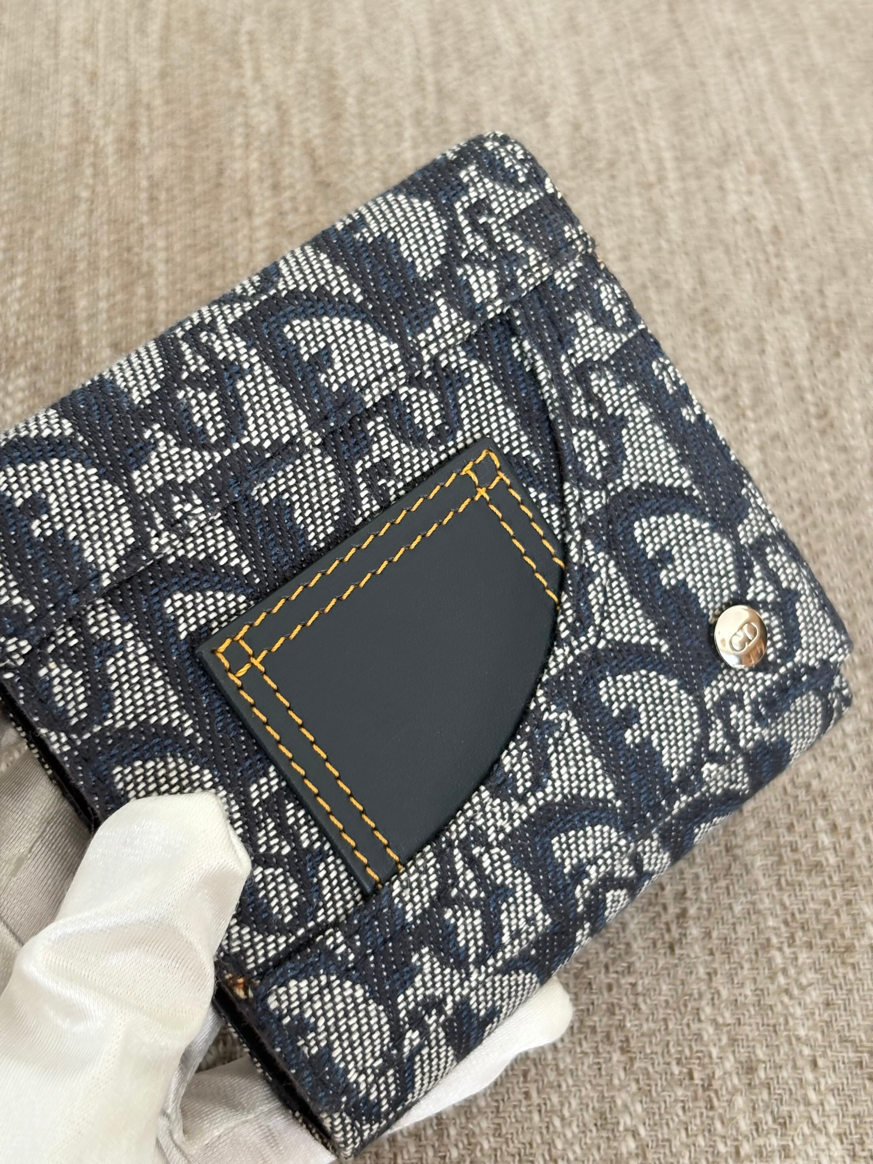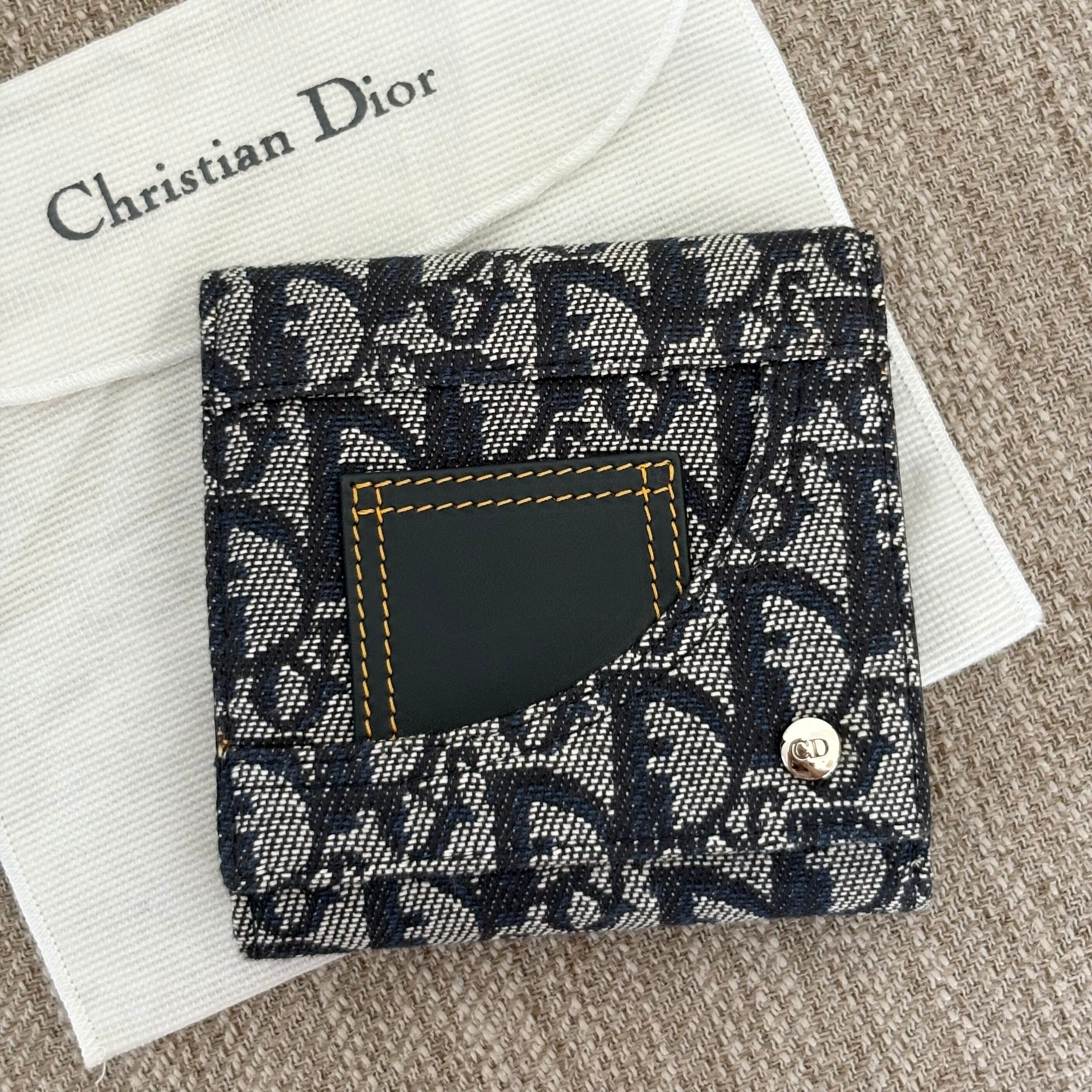 【極美品】クリスチャンディオール パッチ トロッター柄 キャンバス カーフ レザー 三つ折り財布 ミニ ウォレット ネイビー Christian Dior Vintage Trotter Short Wallet Monogram Navy 22196 | Laiza