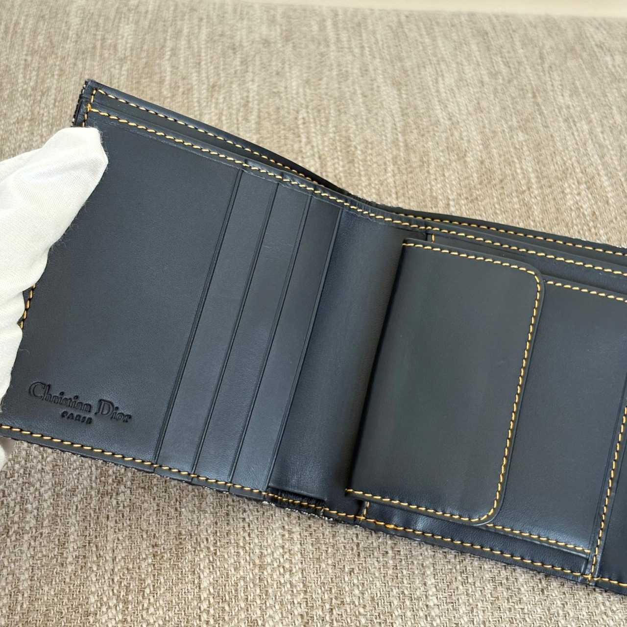 【極美品】クリスチャンディオール パッチ トロッター柄 キャンバス カーフ レザー 三つ折り財布 ミニ ウォレット ネイビー Christian Dior Vintage Trotter Short Wallet Monogram Navy 22196