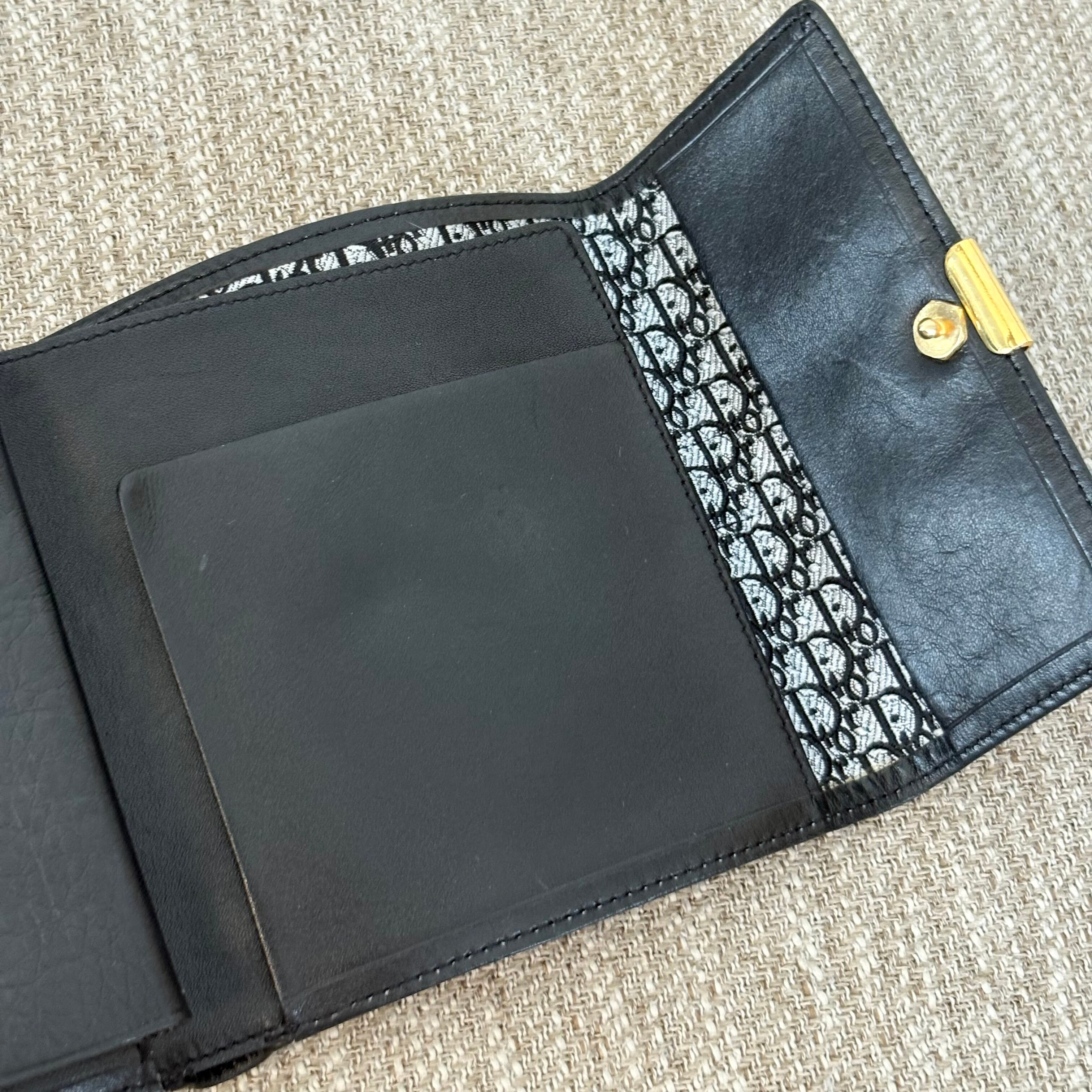 【美品】クリスチャンディオール トロッター柄 レザー 本革 二つ折り財布 ウォレット 小銭入れ カードケース ブラック Christian Dior Vintage Short Wallet Monogram Black 22234