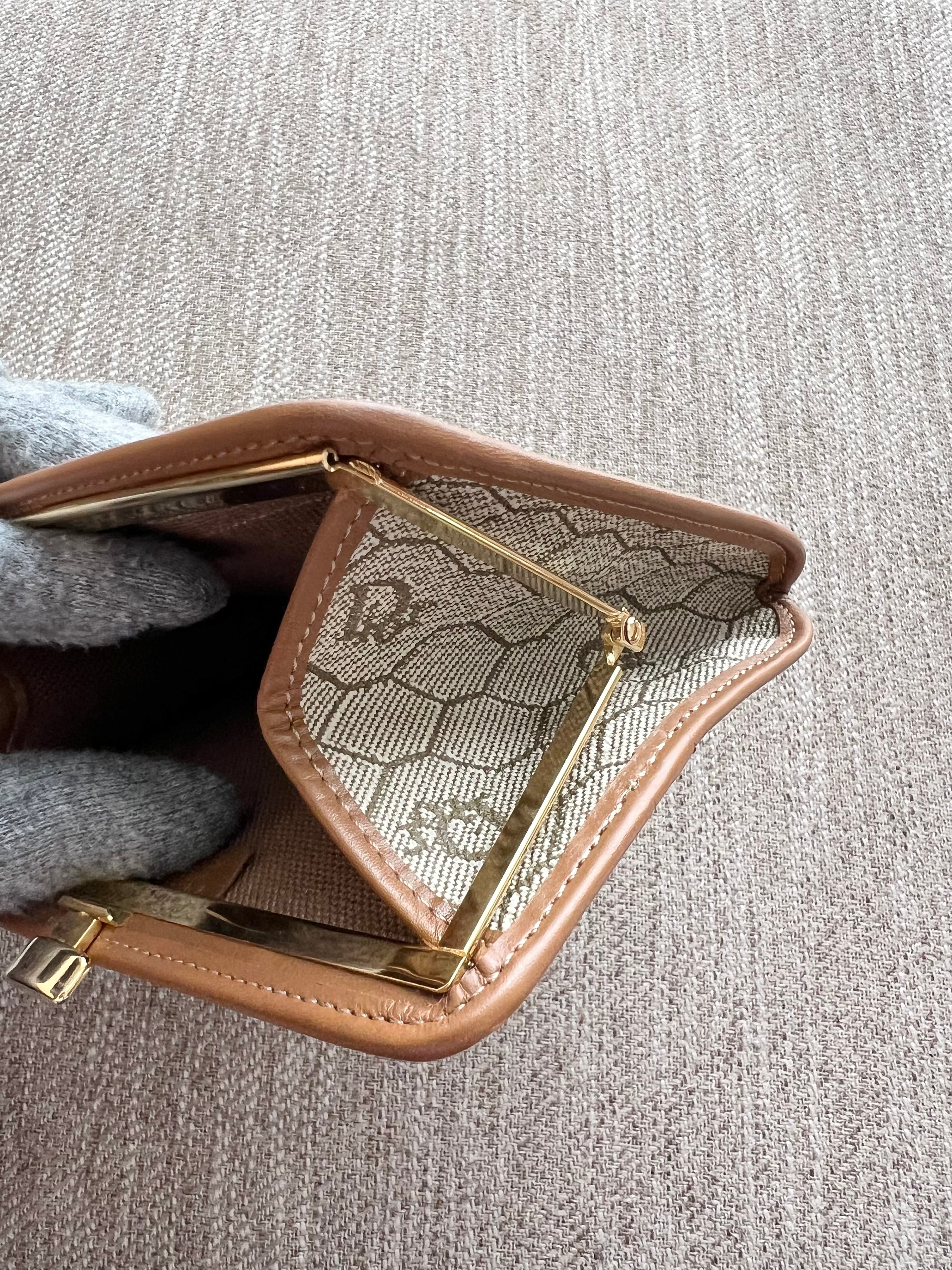 Christian Dior クリスチャンディオール ヴィンテージ ハニカム柄 キャンバス がま口 コインケース カーキ系 【中古】